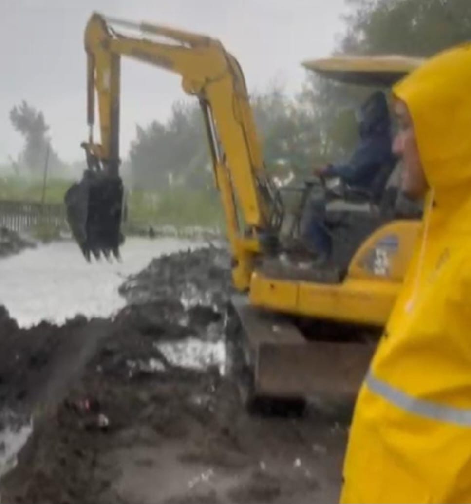 Plt Kadis PUPR Indramayu, Maulana Malik langsung turun ke lapangan mengintruksikan petugas mengoperasikan alat berat excavator mengeruk Kali Ceblok- Indramayu untuk mengurangi resiko kebanjiran warga jantung kota, dan air pun langsung mengalir ke muara.