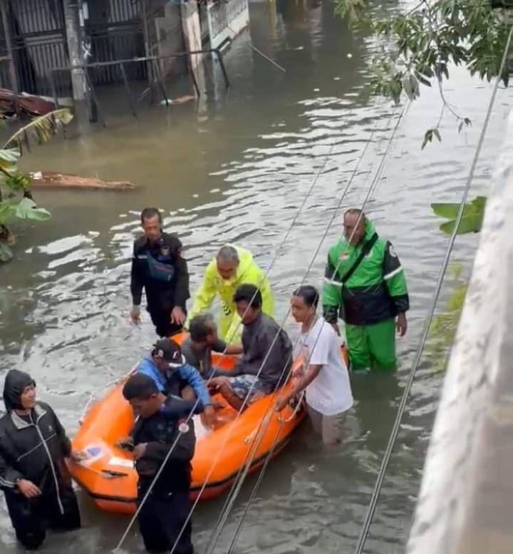 Petugas Badan Penanggulangan Bencana Daerah (BPBD) Indramayu langsung menerjunkan personel ke lokasi untuk mengevakuasi warga menggunakan perahu karet menuju tempat yang lebih aman.