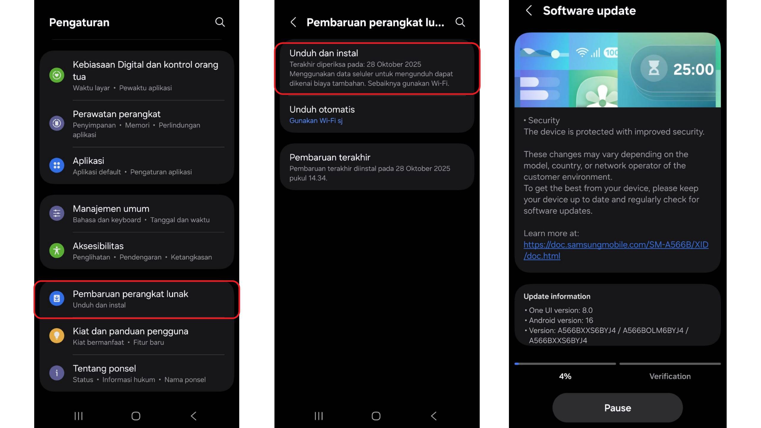 Tak lupa, ponsel ini dibekali update software yang panjang, dan baru-baru ini telah dapat diperbarui ke One UI 8. Untuk menikmati pengalaman baru yang lebih cerdas dan intuitif, pengguna dapat memperbarui perangkatnya dengan cara: