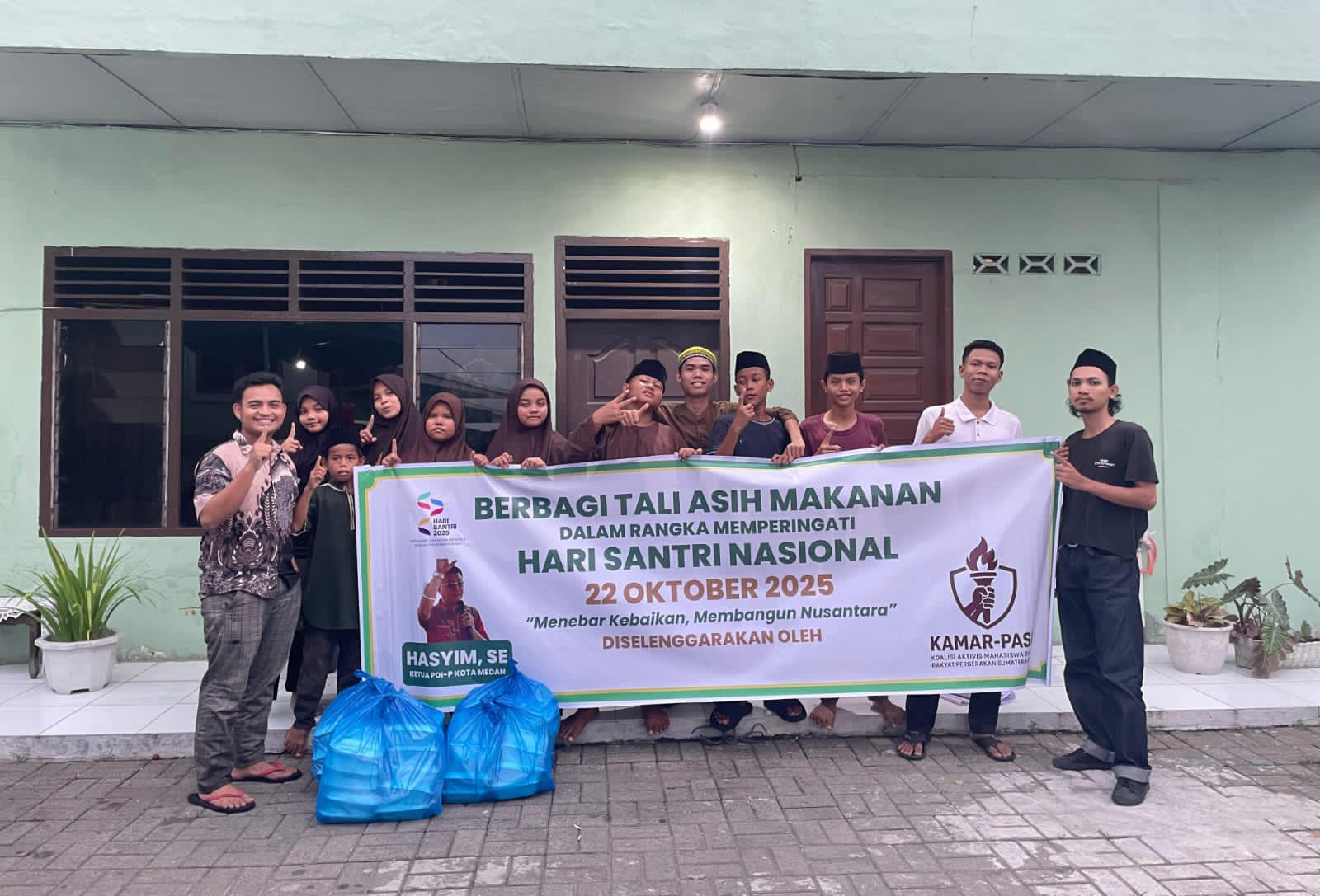 Medan — Dalam semangat memperingati Hari Santri Nasional yang jatuh pada 22 Oktober 2025, Ketua DPC PDI Perjuangan Kota Medan, Hasyim SE, bersama Koalisi Aktivis Mahasiswa dan Rakyat Pergerakan Sumatera Utara (KAMAR-PASU) menggelar kegiatan sosial berbagi tali asih berupa 200 paket makanan kepada masyarakat dan anak-anak panti asuhan di Kota Medan. Kegiatan ini menjadi simbol nyata dari nilai-nilai kebersamaan, gotong royong, serta penghargaan terhadap perjuangan dan pengabdian kaum santri bagi bangsa.