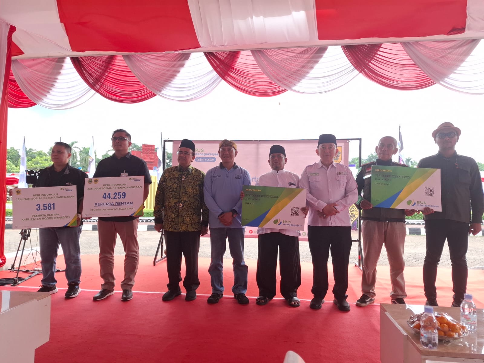 Saat ini, sebanyak 44.259 pekerja rentan telah dilindungi melalui APBD Provinsi Jawa Barat, serta 3.581 pekerja marbot melalui APBD Kabupaten Bogor.