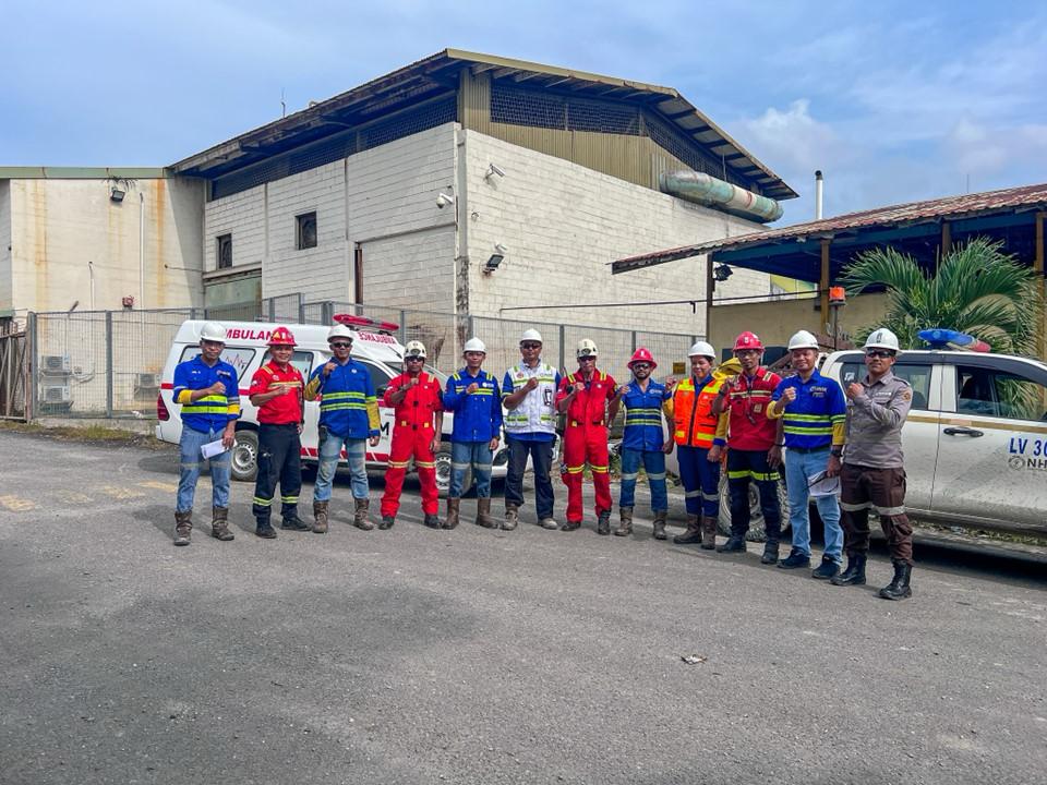 Senada, Alip Puspandaru, Manajer Departemen Ore Treatment, menegaskan bahwa kegiatan ini juga merupakan bagian dari komitmen perusahaan terhadap standar keselamatan ESDM. “Karena departemen kami berhubungan langsung dengan bahan berbahaya sianida, sangat penting bagi kami untuk memastikan pengendalian yang baik agar tetap aman bagi pekerja dan lingkungan. Simulasi ini merupakan kesempatan yang bagus untuk mengasah kesiapsiagaan dan koordinasi tim di lapangan dalam menghadapi situasi darurat. Kegiatan ini berjalan lancar, dengan kerja sama yang solid mulai dari penanganan korban, penanganan tumpahan, dan evakuasi karyawan ke titik aman,” kata Alip.