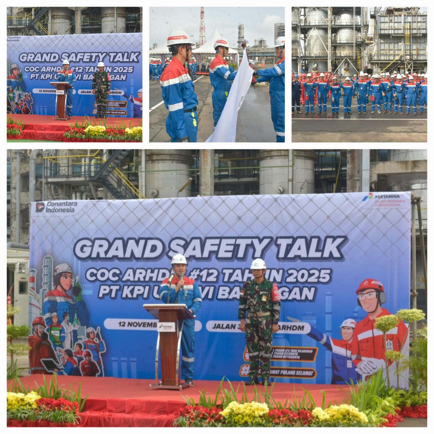 BALONGAN – PT Kilang Pertamina Internasional (KPI) Unit VI Balongan menggelar Grand Safety Talk (GST) pekerjaan COC ARHDM #12 di area kilang (Jalan 3 – Depan ARHDM) pada Rabu (12/11). Kegiatan ini dihadiri oleh tim manajemen dan pekerja sebagai bagian dari persiapan pelaksanaan kegiatan Turn Around (TA) atau pemeliharaan Unit COC ARHDM #12 Tahun 2025.