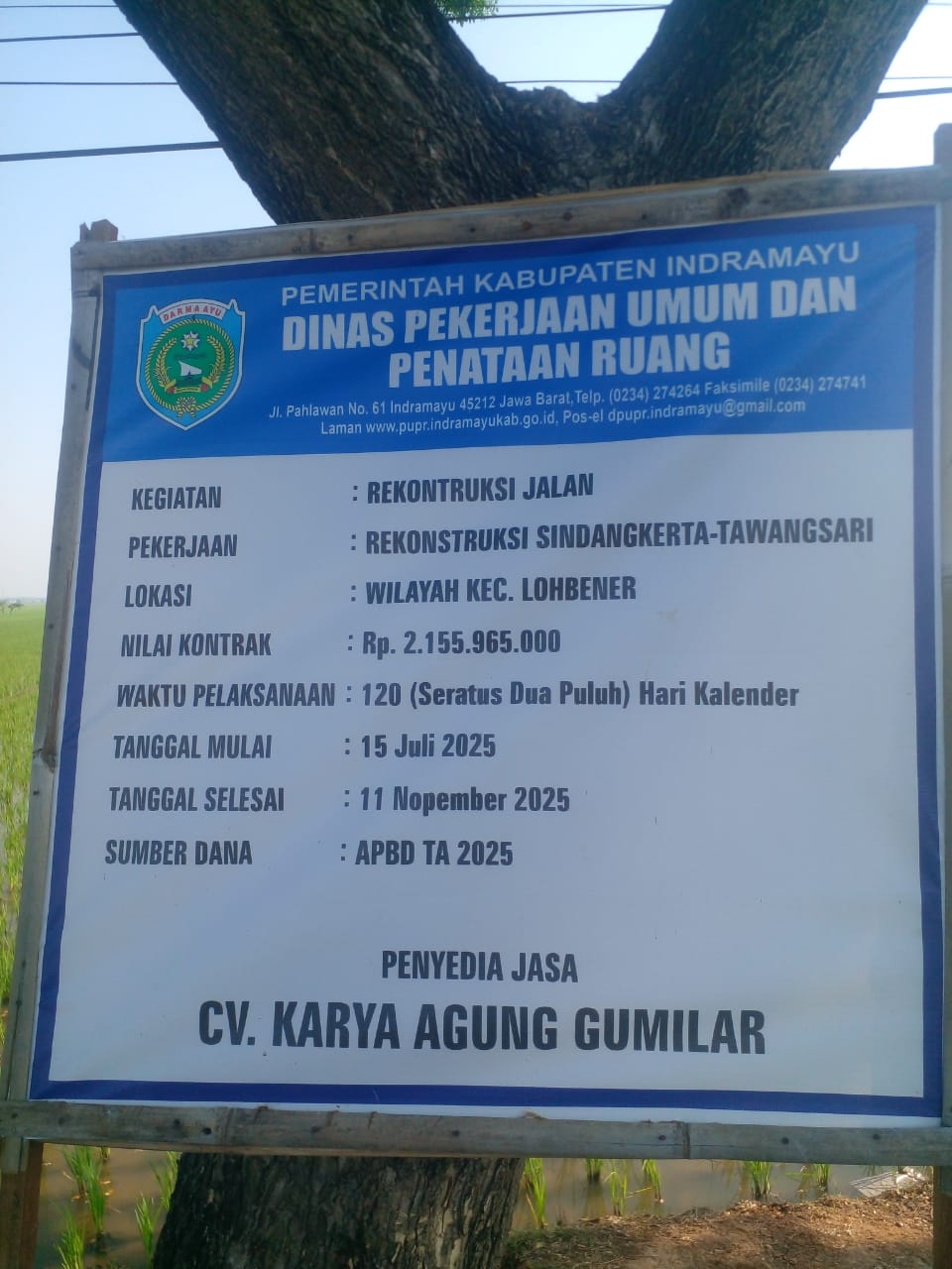 Sementara, proyek yang dilaksanakan oleh CV. Karya Agung Gunilar ini menelan dana APBD Kabupaten Indramayu sebesar Rp 2.1 miliar dengan 120 hari kalender kerja. “Alhamdulillah kita bisa melaksanakan pekerjaan sesuai dengan target waktu bahkan lebih cepat, semoga hasilnya bisa memberikan manfaat bagi masyarakat sekitar,” tutur Mas Ino pelaksana proyek yang ditumuhi di lokasi. (Abdul Gani)